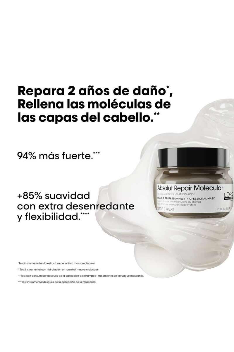 Para un resultado óptimo, utilizar después del champú Absolut Repair Molecular y del sérum aclarado. Aplicar uniformemente sobre el cabello secando con toalla. Dejar actuar de 1 a 2 minutos. Aclarar abundantemente.