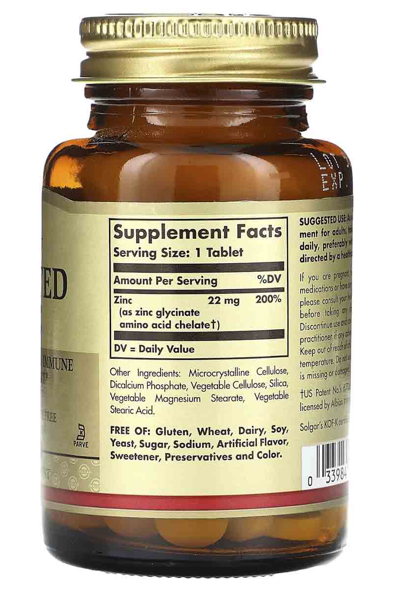 Solgar Chelated Zinc 100 Tabletas