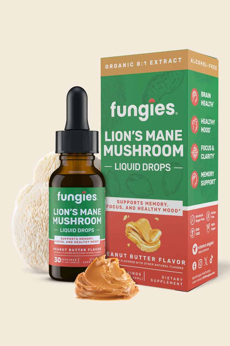 Funguies - Gotas líquidas de hongo melena de león Flavor Peanut Butter 30 ml